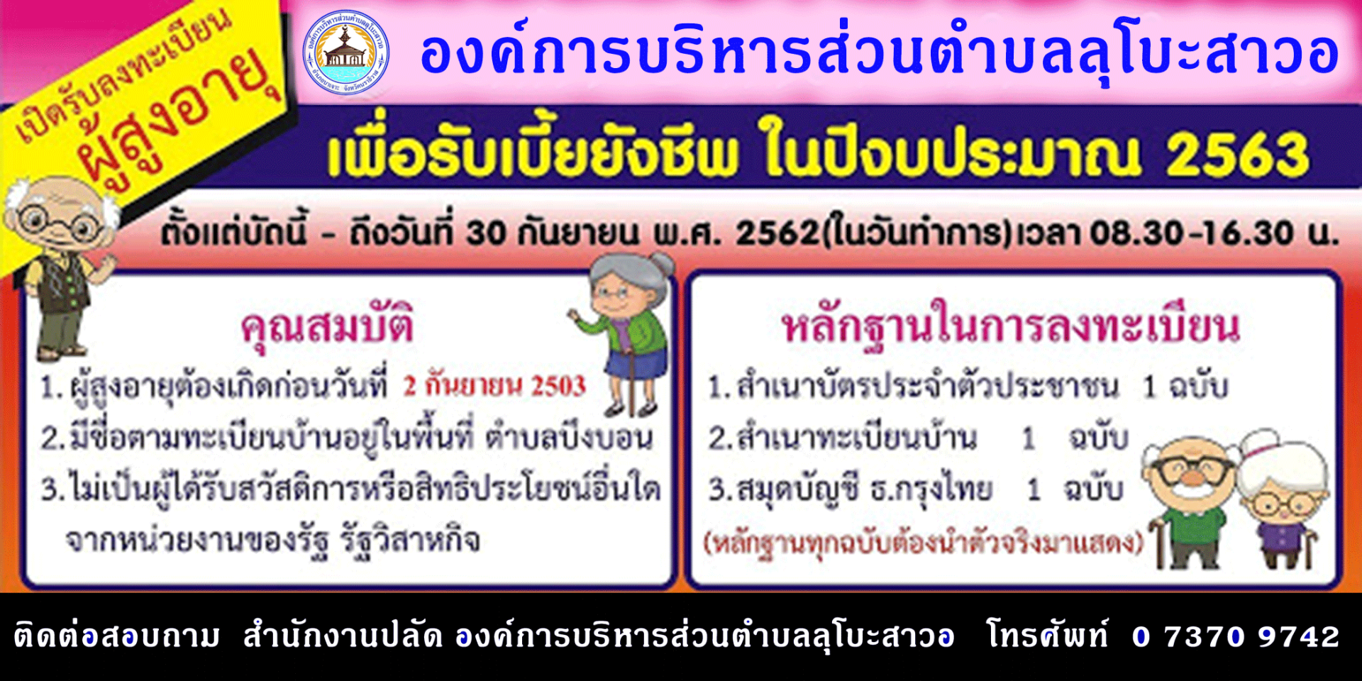 ประชาสัมพันธ์ การลงทะเบียนเพื่อขอรับเบี้ยยังชีพผู้สูงอายุ ประจำปีงบประมาณ 2563